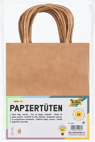 Tas met handvat Folia kraftpapier 125gr 18x21x8cm 20 stuks naturel