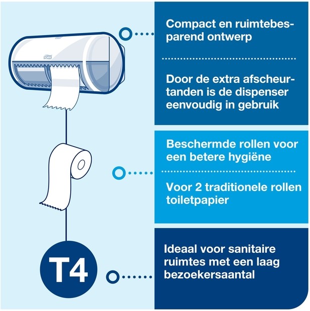 Toiletpapierdispenser Tork T4 Elevation duo wit 557000