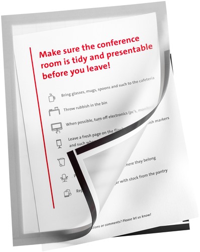 Met het zelfklevende Infokader van Quantore A3 presenteer je documenten, posters of informatiebladen altijd overzichtelijk en professioneel. De zilveren rand geeft een strakke, moderne uitstraling en het magnetische zichtframe is zowel staand als liggend te gebruiken. Dankzij de zelfklevende achterzijde kleeft het stevig op alle vlakke oppervlakken en is het herpositioneerbaar zonder lijmresten achter te laten. Ideaal voor kantoren, winkels, scholen en openbare ruimtes waar informatie regelmatig wisselt. Verpakt per 2 stuks, zodat je direct meerdere plekken kunt voorzien van duidelijke communicatie. kenmerken: