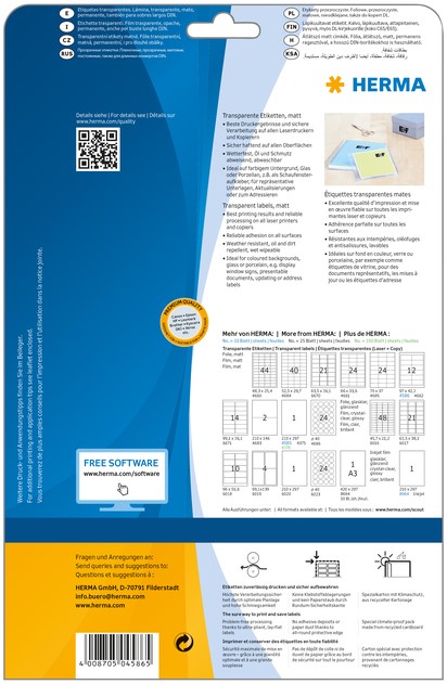 Etiket HERMA 4585 210x297mm weerbestendig transparant mat 10 stuks