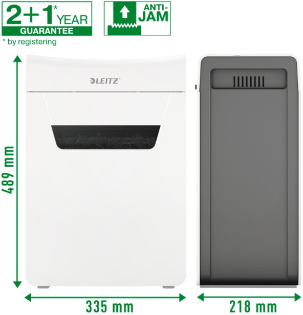 Papiervernietiger met handmatige invoer voor maximaal 10 A4-vellen (80gr). Zeer stille werking voor een rustige thuis- en werkomgeving (bij regelmatig gebruik van Leitz olievellen).