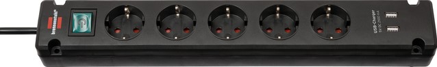 Stekkerdoos Brennenstuhl Bremounta 5vdig incl 2 USB 3m zwart