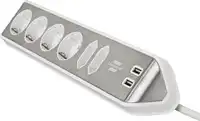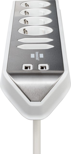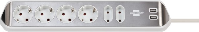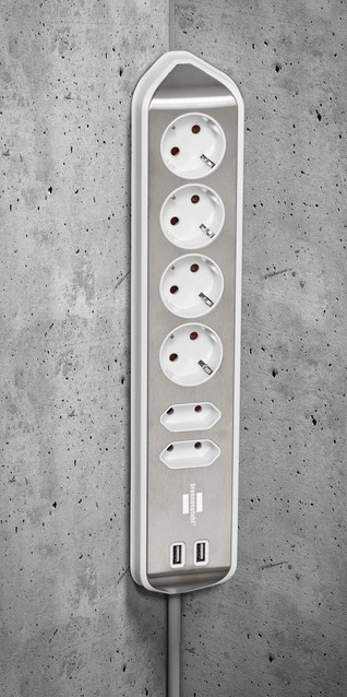 brennenstuhl®estilohoekaansluitdoosstrook met randaarde en met USB laadfunctie 6-weg 4x beschermende contactdozen & 2x Eurozilver/wit.