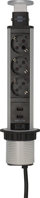 Tower Power USB-charger stekkerdoos 3-voudig met randaarde en met dubbele USB-laadingang 2m H05VV-F 3G1,5 Volledig verzonken in tafelblad Stekkerdoos voor permanente inbouw. Kan worden verzonken in het bureaublad. Geschikt voor werkplekken, keuken, hobbyruimtes enz.