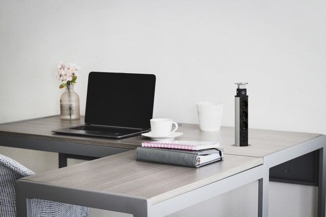 Innovatieve stekkerdoos voor flexibele inrichting van de werkplek.
