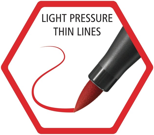 De Pen 68 brush heeft alles. Zelfs beginners slagen er gemakkelijk in te brushletteren dankzij de stevige en toch flexibele punt. Oefen lichte of (heel) stevige druk uit op de flexibele penseelpunt van de viltstift. Dit bepaalt hoe dik of dun de lijnen zullen worden. In een grote keuze aan prachtige kleuren. Met de inkt op waterbasis kun je allerlei speciale effecten creëren, zoals aquareleffecten of mooie kleurverlopen. Daarom zullen ook ervaren brushletteraars de Pen 68 brush met veel plezier gebruiken. Alles uiteraard met de vertrouwde kwaliteit, made in Germany. De Pen is extra duurzaam, vanaf heden is de dop en penbehuizing gemaakt van 96% bio-gebaseerd kunststof volgens massabalans benadering.